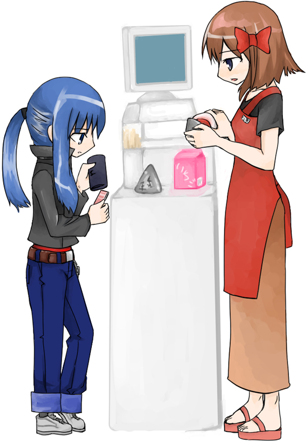 と私の看板娘がはちあわせ(=゚ω゚) だが、ただの買い物にきた客と、バイトの店員であるがゆえ、かぎりなく薄い関係なのであった 店員さんは祖藤 葉音さんと言うキャラらしい こっちもネタバレすると、時川霧子さんと言う名前があるが、それはまたいつくるか解らない別の日に紹介しよう